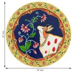 This hand-painted pichwai features a beautiful image of a cow surrounded by colorful flowers. The cow is a sacred animal in Hinduism, and this pichwai would be a perfect addition to any home or puja room.