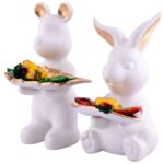Set of 2 Rabbits in White Decorative Showpiece for Home Decor Showpiece | Home Kitchen Decor | Office Decorative Item – 13 cm