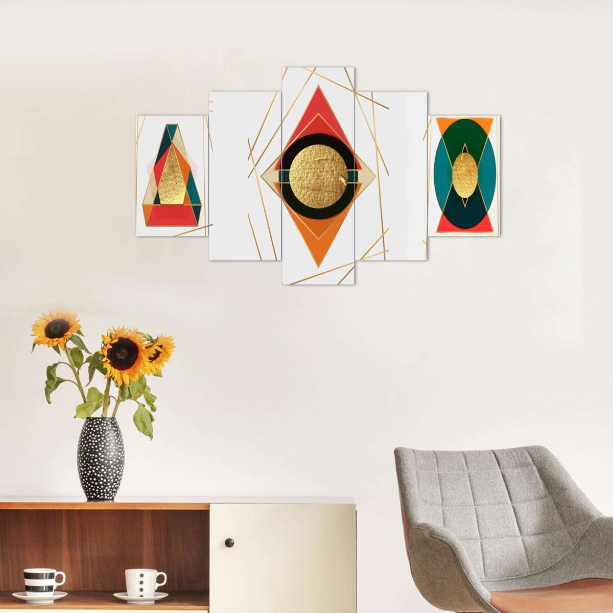 Modren Art Set of Five 3D Framed Paintings for Wall Decoration – Ideal for Home, Living Room, and Bedroom (75 x 43 CM)